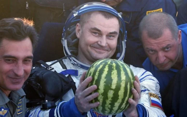 One by one, each were carried to nearby lawn-chair-like couches for initial health checks as well a drink of water. Ovchinin, as a joke, requested a watermelon – a request the ground team fulfilled.