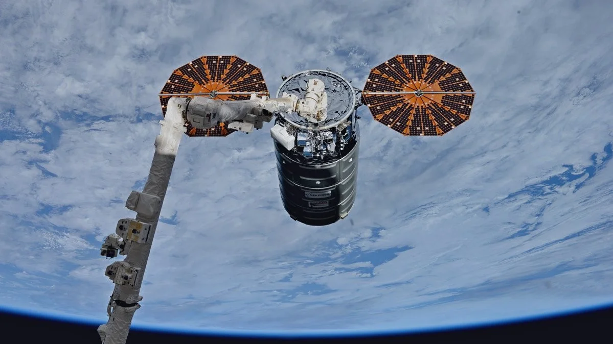 Over the next couple hours, ground teams commanded the robotic arm to move Cygnus from its position of about 10 meters beneath the Destiny laboratory module to just in front of the Earth-facing berthing port of the Unity module.