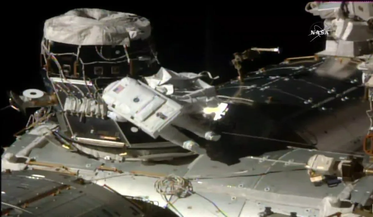 Once outside the airlock, the two went separate ways. Kimbrough, the lead spacewalker, translated hand-over-hand to the front of the S0 truss to work on installing an upgraded computer relay box.