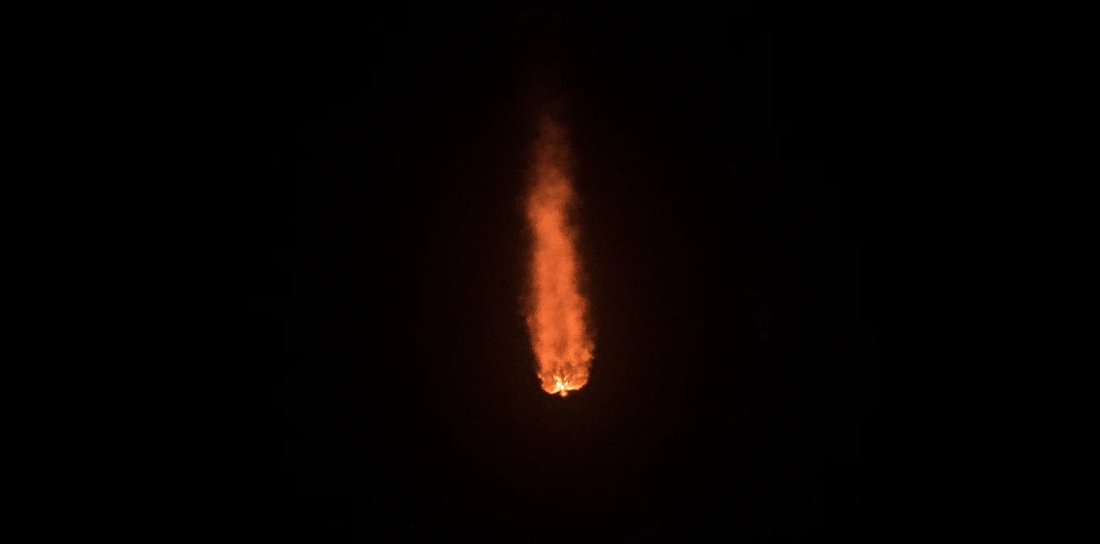 It took 15 seconds for the five multi-chamber engines at the base of the Soyuz-FG rocket to throttle to full power. Then five seconds later, the entire stack began rising toward the night sky.